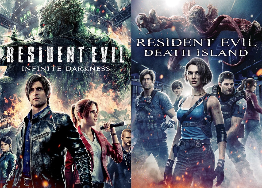 Fin 2008, la piètre qualité des films live est balayée d’un revers de main par Resident Evil Degeneration, premier d’une série de longs métrages en images de synthèse, qui renoue ici avec le duo formé par Leon et Claire dans un sympathique scénario se déroulant dans un aéroport et chronologiquement situé entre Resident Evil 4 et 5. Fin 2012, Resident Evil Damnation remet en scène Leon dans de superbes affrontements face à de puissantes armes biologiques en Europe de l’Est, le scénario se déroulant cette fois-ci entre Resident Evil 5 et 6. En 2017, un troisième film d’animation intitulé Resident Evil Vendetta marque le retour de Rebecca aux côtés de Chris et de Leon dans une nouvelle histoire sur fond d’attaque terroriste, située entre Resident Evil 6 et 7. En 2021, le scénario effectue un retour en arrière avec Resident Evil Infinite Darkness, série animée de quatre épisodes se déroulant un an après Resident Evil Degeneration, dans laquelle Leon et Claire enquêtent sur une cyberattaque liée à un incident biologique à la Maison-Blanche. Un histoire peu palpitante à la technique convenue qui marque toutefois une rupture idéologique entre les deux personnages, Claire annonçant ouvertement à Leon que son costume d’agent américain ne lui va pas du tout. Datant quant à lui de 2023, Resident Evil Death Island réunit les cinq principaux protagonistes des films animés, marquant alors la première réapparition de Jill Valentine depuis son lavage de cerveau par Wesker.