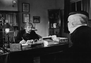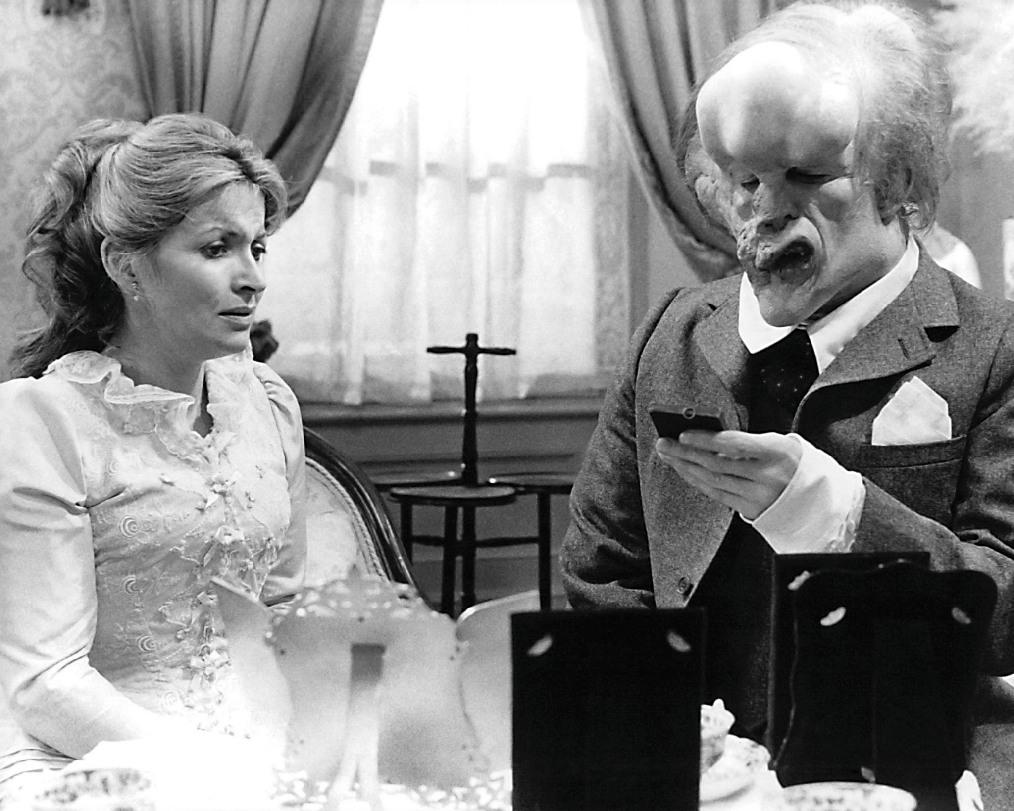 En l’examinant avec l’accord de son propriétaire Bytes incarné par Freddie Jones (Firefox L’Arme Absolue, Dune, L’Histoire sans Fin 3), Treves découvre un homme de vingt-et-un ans au visage monstrueux tellement effrayé qu’il ne semble pas pouvoir s’exprimer oralement. Soutenu par le directeur de l’hôpital Sir Carr Gomm, joué par John Gielgud (Le Crime de l’Orient-Express, Caligula, Gandhi), il héberge Merrick dans une chambre individuelle pour l’étudier plus en détail et tenter de le comprendre. Il est alors humanisé et mis en confiance par la comédienne Madge Kendal, interprétée par Anne Bancroft (Trente Minutes de Sursis, Jésus de Nazareth, Malice).