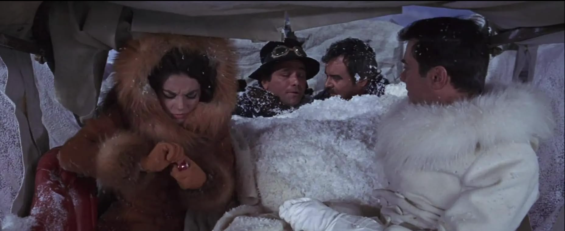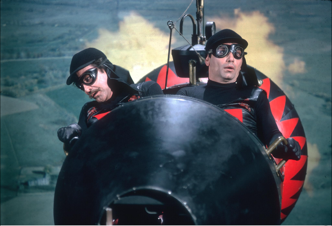 En face, Tony Curtis joue la sobriété : le Grand Leslie, toujours impeccable dans ses tenues immaculées, circulant dans un magnifique véhicule blanc, est en effet le prototype du héros viril et élégant au sourire étincelant auquel nulle femme ne résiste. Sauf peut-être Natalie Wood (West Side Story, la Fureur de vivre), totalement rayonnante, une « femme émancipée » qui nous gratifie en outre du premier karaoké de l’histoire du cinéma dans une séquence destinée à faire chanter le public des salles. Son personnage change constamment de tenue à chaque scène, ce qui confère à chacune de ses apparitions une dimension humoristique. Enfin, véritable personnage du métrage, la Hannibal 8, le prototype à 6 roues du professeur, aussi noir que ses pensées, force l’admiration : elle aurait pu faire bonne figure dans un James Bond.