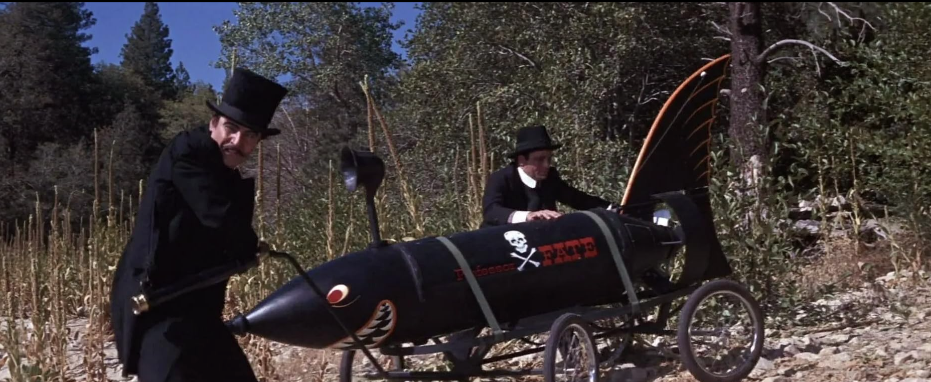 La fin de la course est également très réussie, avec des dialogues ambivalents, aux délicieux sous-entendus, rappelant le Grand Sam (Henry Hathaway, 1960). Un spectacle qui rend nostalgique devant tant de bonne humeur, de cocasseries et d’inventions, annonçant le non moins célèbre dessin animé des Fous du volant que les producteurs Hanna & Barbera ont calqué sur l’intrigue du film, lequel se veut un hommage aux grandes comédies muettes de l’ère du Noir & Blanc (le film est d’ailleurs dédié à Laurel & Hardy).