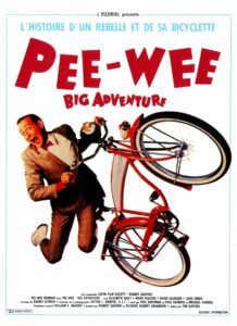 Premier film de Tim Burton après des courts métrages comme Doctor of Doom, Vincent et Frankenweenie, Pee-Wee’s Big Adventure raconte une nouvelle histoire du célèbre personnage que Paul Reubens interprétait dans ses spectacles. Adulte d’apparence mais très enfant dans sa tête, il va vivre des mésaventures en voulant absolument récupérer sa bicyclette rouge, volée par un méchant voisin de quartier. Complètement barré, le film nous emmène dans des situations de plus en plus burlesques avec des gags qui arrivent de très loin : un accident au ralenti suite à des panneaux indiquant des virages au fléchage impossible, Pee-Wee qui se sort d’une mauvaise situation avec des motards en dansant dans un bar sur la musique « Tequila de The Champs », des courses-poursuites ridicules avec un Bud Spencer du pauvre parce qu’il avait passé du temps avec sa fiancée Simone qui rêve de voyager à Paris, tout y passe !