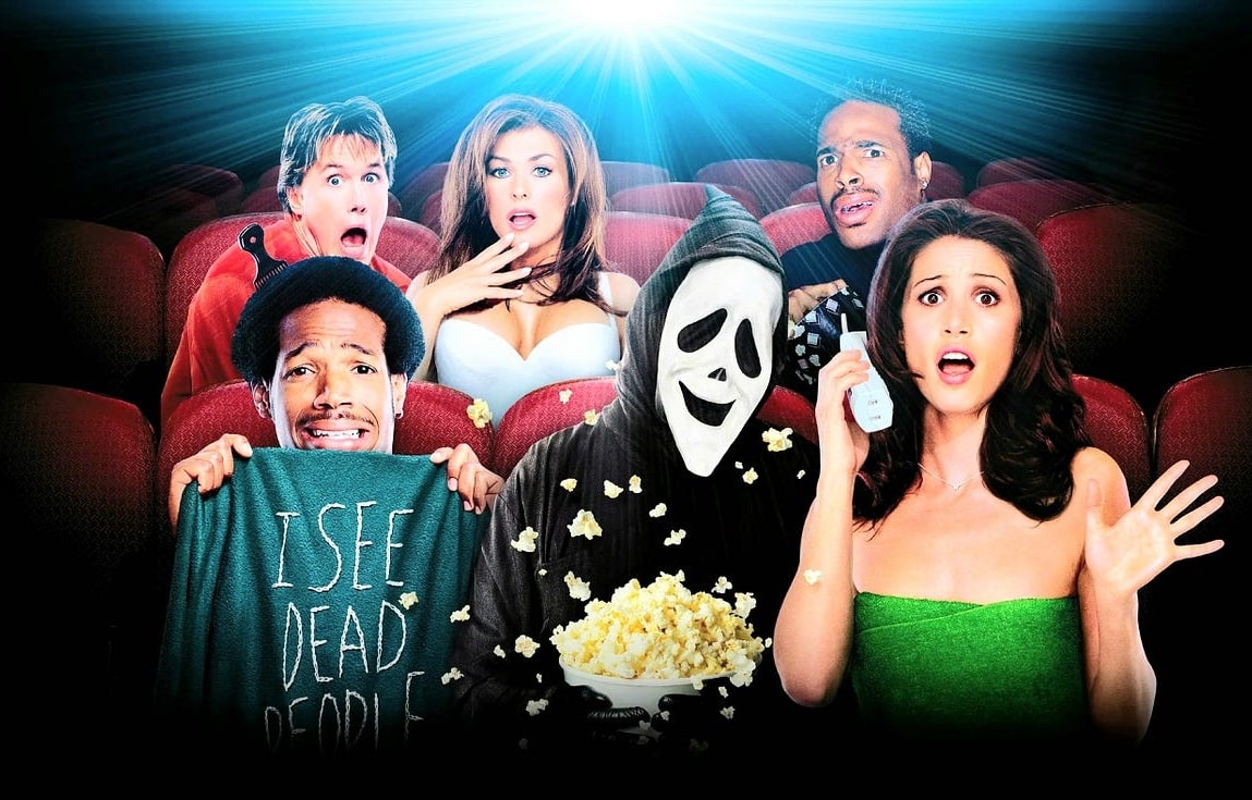 Comédie cultissime réalisée par Keenen Ivory Wayans, Scary Movie perpétue toute une génération de teen movies dans la lignée d’American Pie avec un humour potache qui parodie le scénario de Scream en y incluant des éléments de nombreux autres films eux aussi tournés en dérision. Le casting se compose d’acteurs encore novices dont les personnages ont une consonance proche de ceux qu’ils imitent. L’héroïne Cindy Campbell jouée par Anna Faris (Lost in Translation, Le Secret de Brokeback Mountain) ressemble par exemple à une Sidney Prescott écervelée dont le nom fait référence à Neve Campbell tandis que Shannon Elizabeth (American Pie, Love Actually, Cursed) incarne une certaine Buffy en clin d’œil à la série télévisée ayant fait connaître Sarah Michelle Gellar.