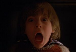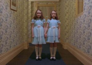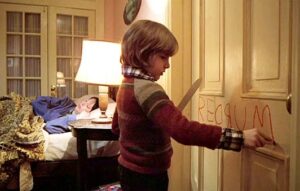 L’hôtel semble en effet posséder l’ensemble des personnages, notamment Jack qui se retourne contre sa famille armé d’une hache lors d’une séquence culte, mais aussi Danny qui voit apparaître des rivières de sang et des jumelles assassinées plusieurs décennies auparavant, les gros plans sur son visage effrayé étant très réussis. En dehors du rideau de douche faisant référence à Psychose, l’écriture de « REDRUM » sur la porte de la salle de bain et le tapis à motifs rouges et orange demeurent les symboles les plus iconiques du long métrage. Très différent du roman d’origine, Shining montre qu’une adaptation très personnelle peut engendrer un film particulièrement qualitatif. Mécontent de cette adaptation, Stephen King crée une mini-série de trois épisodes en 1997, Shining Les Couloirs du Temps, dont il assure lui-même le scénario.