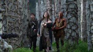 Si Alex Garland n’était pas à l’écriture du deuxième film, le voici bien de retour. Le scénariste a su prouver aussi qu’il était un excellent réalisateur avec Ex_Machina ou encore Civil War. Il revient à l’écriture, dans la franchise en mettant en avant un jeune garçon du nom de Spike qui est le vrai héros du long-métrage. Alex Garland a toujours su mettre ses personnages en avant, et c’est le cas une fois encore avec 28 Ans plus tard. La première partie du film, nous montrera Spike et son père face au danger pour ensuite dans la deuxième partie être avec sa mère. L’évolution de sa relation avec son père change radicalement, car le jeune garçon ne le supporte plus et il lui en veut. Les séquences avec sa mère sont assez touchantes, puis la rencontre avec le Dr Kelson reste très intéressante, même s’il est peu développer c’est qu’on le verra davantage dans la suite.