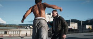 Bagarre est aussi un film qui ose des choses, il prend quelques risques dans quelques séquences, ce qui est assez rare. Naim est si bête qu’il ne se rend pas compte que Laetitia est intéressée par lui, mais il s’engage dans des situations où il ne fera qu’aggraver les problèmes. Nassime Lyes (Farang, Les Nouveaux Riches) a vraiment un talent comique, et le prouve encore avec Bagarre. Ramzy Bédia interprète Gary, celui qui dirige Allo Bagarre. Anaide Rozam est Laetitia, Hedi Bouchenafa joue Kevlar, Matthieu Longatte est JB. Matthias Quiviger, plus connu sous le nom de Ragnar le Breton, joue Siegfried. Bagarre est un film disposant d’un très bon casting, qui aborde les choses intelligemment, puis l’humour du film reste vraiment maîtrisé.