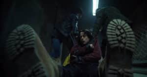 Trois hommes Stacy, Walker et Gage se réfugie dans un entrepôt afin d’échapper à la police. Sans le savoir, ils se trouvent dans un endroit ou se déroule des combats de chien, ou participe Blue un criminel influant et son argent se trouve à l’intérieur. Les trois hommes sont contraints de rester à l’intérieur le temps, que les recherches les concernant se calme. Seulement ils ne sont pas seuls, dans ce grand entrepôt, un chien les traque afin de les tuer. L’un deux Gage, un junkie trouve un cadavre déchiqueté par le chien, l’animal entraîner à tuer cherche à en finir avec eux. Cependant Blue veut récupérer son argent, des flash-back nous permettra de comprendre qui il est vraiment. Gage le junkie quant à lui, est en manque de drogue et veut prendre sa dose quitte à prendre des risques. Gage, gravement blessé par le chien est aidé par Stacy et Walker et tente d’échapper au chien. Mise en scène en huis-clos efficace, qui nous immerge parfaitement dans le film avec des personnages intéressants. Durant le film chacun des personnages, raconte des histoires les concernants arrivé dans le passé, à travers des flash-back. Des flash-back assez inutile au final, car ça n’apporte absolument rien au récit. Des flash-back, qui ne semble être que du remplissage, car le film dans l’ensemble a du mal à vouloir raconter quelque chose. Il n’en reste pas ennuyant pour autant, car la traque avec le chien est plutôt bien maîtriser. Et puis comme Paul Solet, est encore à ses débuts on peut dire que ce n’est pas trop mal. Le casting est aussi très bon, et donc nous porte de l’interêt. Concept intéressant, mais qui aurait mérité un peu plus de travail, dans son écriture.