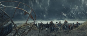 Mais un tel lieu existe-t-il vraiment ? Les Garrity veulent y croire, quand leur embarcation arrive à Liverpool, ils traversent l’Angleterre pour ensuite se rendre en France. Un long voyage se dresse devant cette famille, ou le danger est omniprésent entre guerres entre humains et les restes de la comète provoquant des catastrophes. Greenland : Migration, comme le film précédent n’a pas pour but de nous montrer, des catastrophes à grande échelle détruisant tout sur son passage. De toute manière il n’y a plus grand-chose à détruire, mais l’intérêt du film est de suivre cette famille, sous l’aspect d’un road-movie. Greenland : Migration reste tout autant un film catastrophe, qui traite tout ça de manière un peu plus intimiste. La mise en scène classique, est loin d’être désagréable, puis il y a des séquences très efficaces.