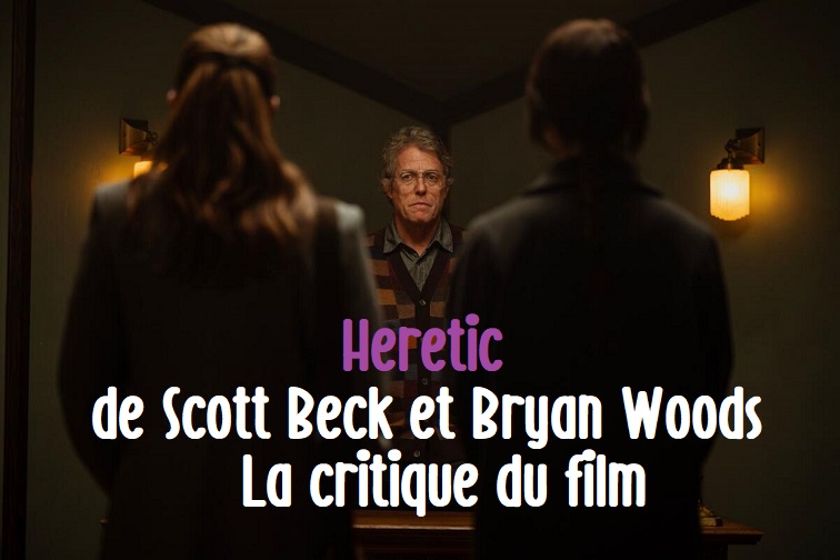 Les séquences dans la cave, sont dignes d’un film d’horreur, mais le film lorgne plus vers le thriller psychologique, surtout à travers ce qu’il fait subir Reed aux deux jeunes femmes. Le film de Scott Beck et Bryan Woods aborde aussi les différentes croyances, et les différents dieux dont certains croient, toujours à travers le personnage de Mr Reed. Hugh Grant est incroyable, sans doute le rôle le plus surprenant de sa carrière, dans le rôle de Mr Reed. Sophie Thatcher vu récemment dans Companion joue la soeur Barnes, Chloé East interprète soeur Paxton. Topher Grace est frère Kennedy, celui qui se charge d’envoyé les soeurs Paxton et Barnes faire du porte-à-porte. Heretic est un film, qui instaure aussi un certain malaise par son ambiance un film aux idées intéressantes, qui tire son épingle du jeu.