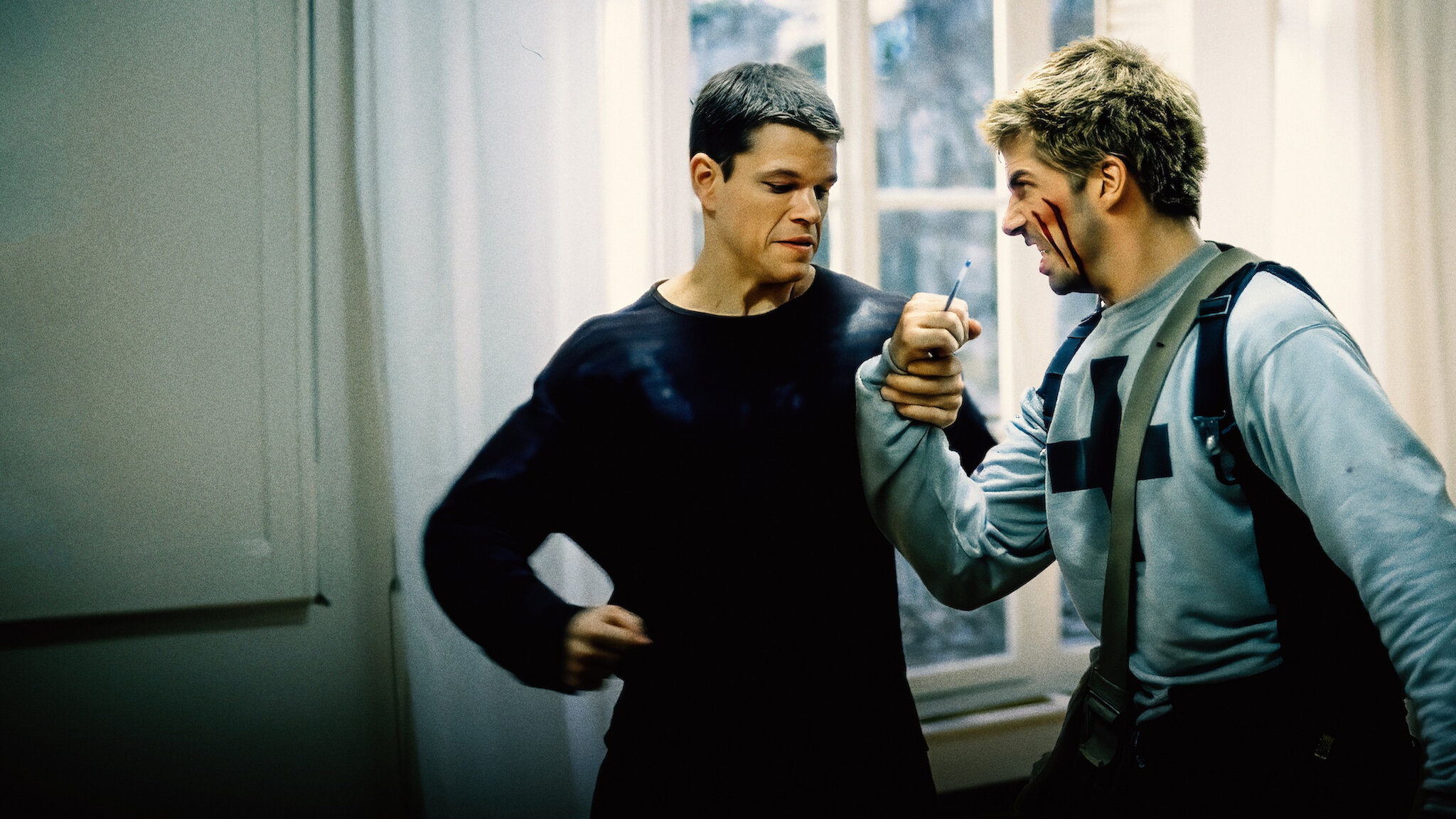 À l’écriture de l’adaptation du livre de Robert Ludlum : Tony Gilroy et William Blake Herron. C’est dans le traitement de son personnage que le récit prend beaucoup d’importance, car on découvre un homme évoluer et découvrir peu à peu qui il est vraiment. C’est aussi un homme traqué par des tueurs engagés par son employeur, pour une mission à laquelle il a échoué. Cet échec de mission l’a conduit en pleine mer et il est devenu amnésique. Jason Bourne est-il un homme bon ? La question se pose, car il était chargé de tuer un homme même s’il s’agissait d’un dictateur.