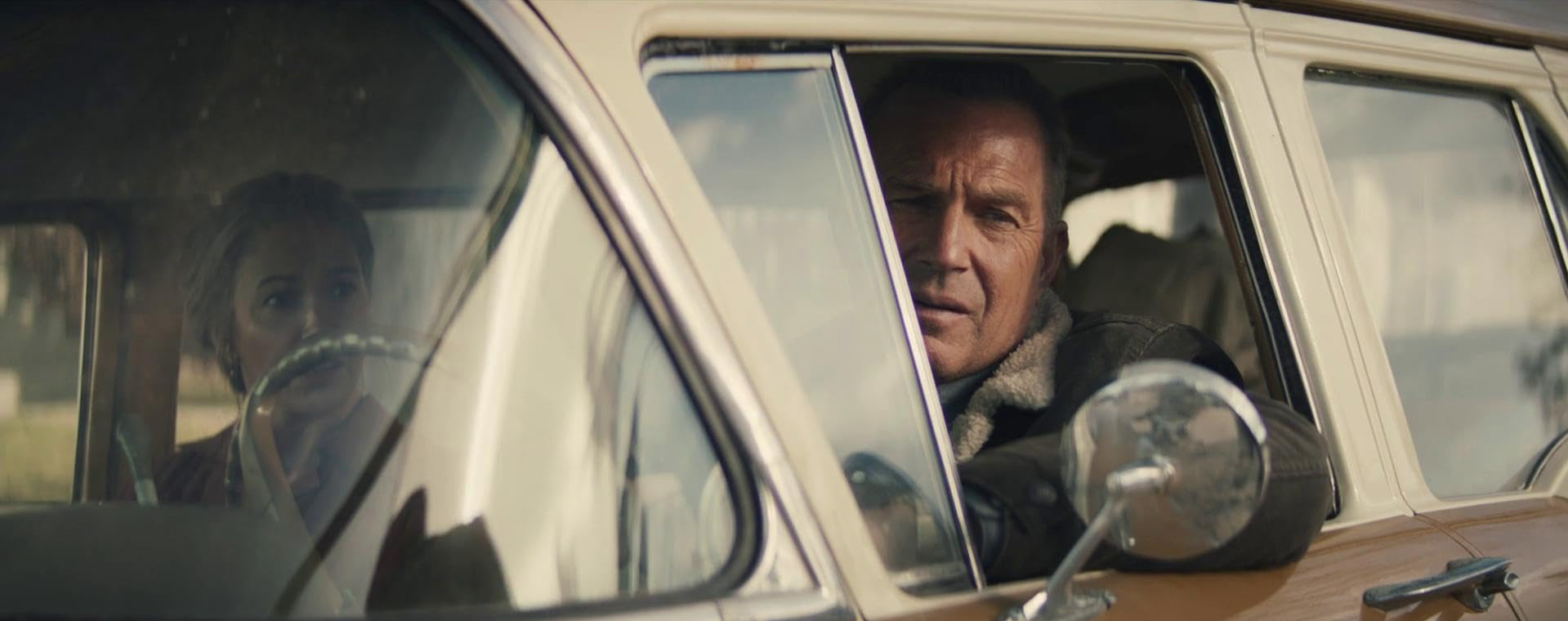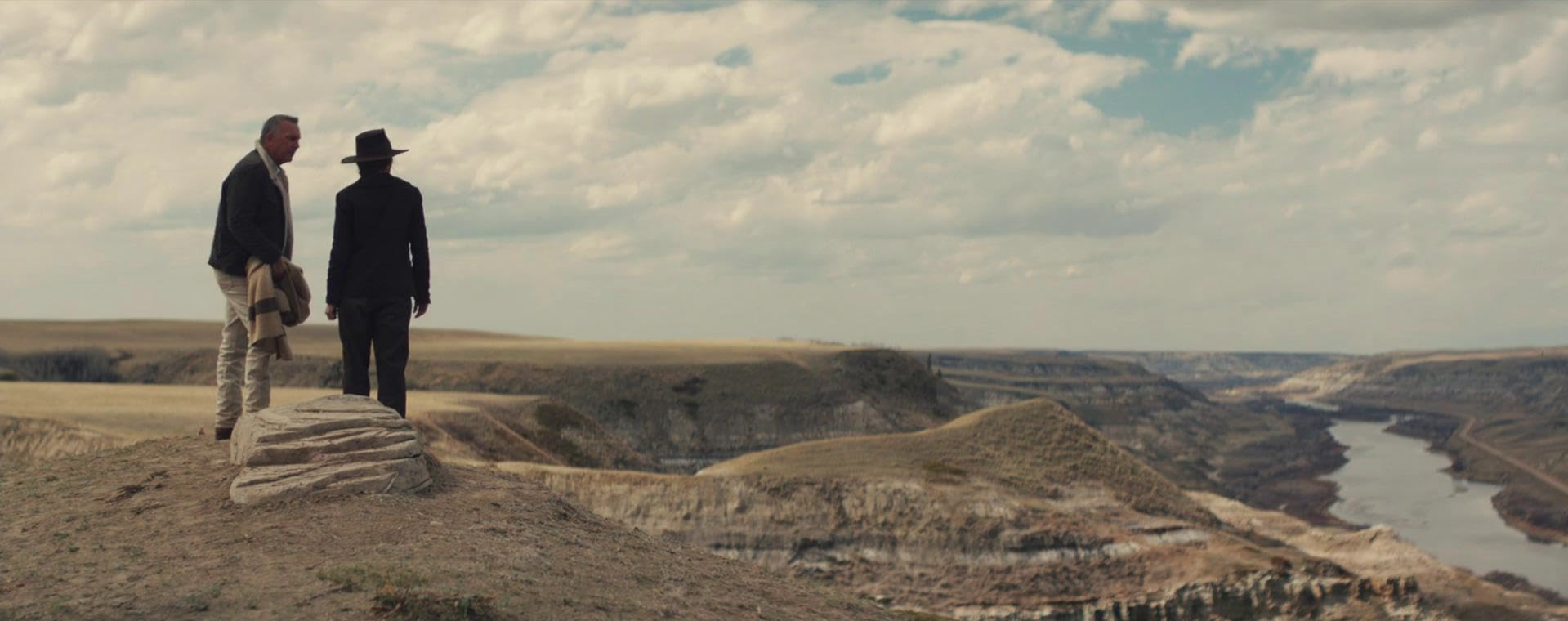 Kevin Costner (Horizon ; Robin des bois, prince des voleurs) à cheval sur fond de soleil couchant dans les contrées verdoyantes et vallonnées du Montana, ça a quelque chose de rassurant, de puissant et de noble qu’on contemple avec un respect mêlé de nostalgie : il y a dans sa silhouette placide, son regard éthéré et son accent traînant un sentiment de normalité, de l’ordre de la tradition ancestrale, qui vous réchauffe et vous enveloppe à l’instar de ces plaids cousus par la grand-mère et patiemment assemblés à partir de vieux bouts d’étoffe élimés par le temps. Instantanément, il évoque en vous de ces souvenirs grandioses, flamboyants et sauvages, de Silverado à Open Range en passant par l’incontournable Danse avec les loups.Costner & Diane Lane (Serenity ; Dalton Trumbo), c’est pareil : un couple qui semble une évidence, tout de charme et de sagesse ; en eux étincelle encore par moments ce pouvoir de séduction dont ils jouèrent à leurs débuts, sourires aguicheurs et œillades complices, parfois coquins, jamais vulgaires. Et depuis Man of steel, impossible de ne pas penser à leurs séquences de bons parents aimants et attentionnés, appliqués à faire de leur super-enfant trouvé le Messie qui sommeillait en lui.