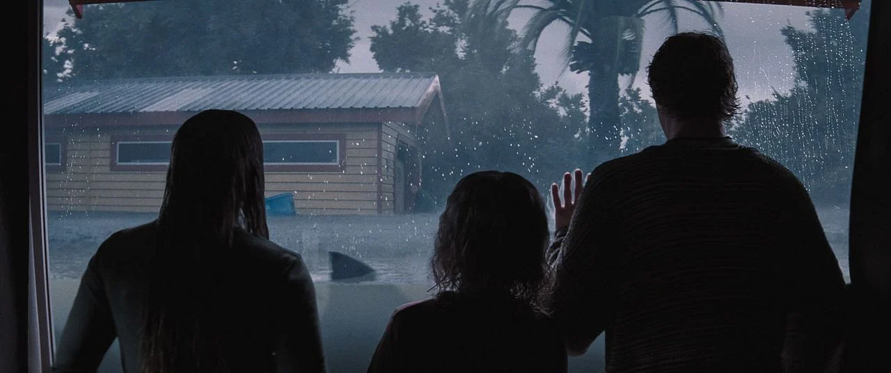 Henri, un ouragan de catégorie 5, s’apprête à frapper une petite ville côtière des États-Unis. Les habitants se préparent au pire, ou certains fuient les lieux. Dakota, une jeune fille, ne souhaite pas quitter la ville, et rester dans la maison où elle vivait avec ses parents décédés. Son oncle Dale est souvent parti en mer, car il est biologiste marin spécialisé dans les requins, tiens donc… Puis il y a Lisa, qui est enceinte et qui doit quitter la ville au plus vite, mais malheureusement ça ne sera pas possible. Puis on suit ces trois gamins, qui étaient en famille d’accueil, qui sont livrés a eux-mêmes. Quand l’ouragan arrive, les digues cèdent, laissant l’eau envahir la ville, avec des requins bouledogues affamés et en plus un grand requin blanc. Dakota reste bloquée chez elle, car l’eau est rentrée dans sa maison, alors elle se réfugie à l’étage.
