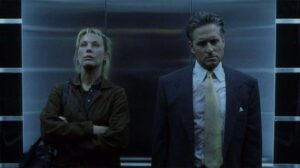 Il doit alors attendre les résultats, et il reçoit un appel qui lui annonce qu’il n’est pas retenu. En réalité il se retrouve au coeur du jeu, quand il trouve chez lui une poupée, il découvre qu’il est espionné chez lui grâce à une caméra, et le présentateur télé semble s’adresser à lui. Plus tard lors d’un dîner, une femme lui renverse un verre puis il se retrouve en cavale avec cette femme, ou il est poursuivi par la société CRS, qui semble vouloir le neutraliser. Cet homme si confiant en lui, mais riche, triste et distant découvre qu’il au coeur d’un grand jeu de manipulation. The Game, est devenu un classique au fil des années, ou il parvient à instaurer une ambiance efficace. Par sa mise en scène David Fincher, nous conduit dans un long-métrage complexe, ou un homme est au coeur d’un jeu dont il n’a aucun contrôle. Si David Fincher est encore à ses débuts, le réalisateur maîtrise parfaitement sa mise en scène.
