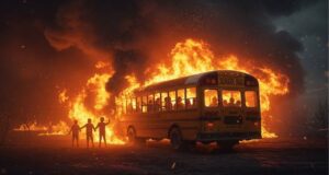 Un chauffeur de bus, Kevin McKay et une institutrice, Mary Ludwig, guident un bus rempli d’enfants à travers un incendie dévastateur.
