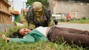 A ce niveau-là, ce n’est plus de l’ultra-violence qu’utilise Winston. Son apparence horrible, le pousse à commettre des mises à mort atroce envers ceux qui sont responsables de son état. Quelques effets gores, sont vraiment douteux c’est-à-dire peu convaincants mais ça doit être fait exprès, du moins on l’espère. Dans sa première partie le film parvient à être vraiment gore, mais devient beaucoup trop sage par la suite même si quelques séquences sont parfois là. Le film réussi a faire rire grâce à des dialogues, qui font leur effet. Peter Dinklage est convaincant dans son rôle, Jacob Tremblay joue Wade son fils. Kevin Bacon habitué au rôle de méchant interprète Bob Garbinger. Taylour Paige joue J.J Doherty, qui sera l’acolyte de Toxic Avenger. Sans oublier Elijah Wood, qui reste mémorable par son apparence. Si le film dispose d’une écriture classique, ce n’est pas gênant mais le film reste beaucoup trop sage, alors qu’il devait nous offrir quelque de bien plus méchant.